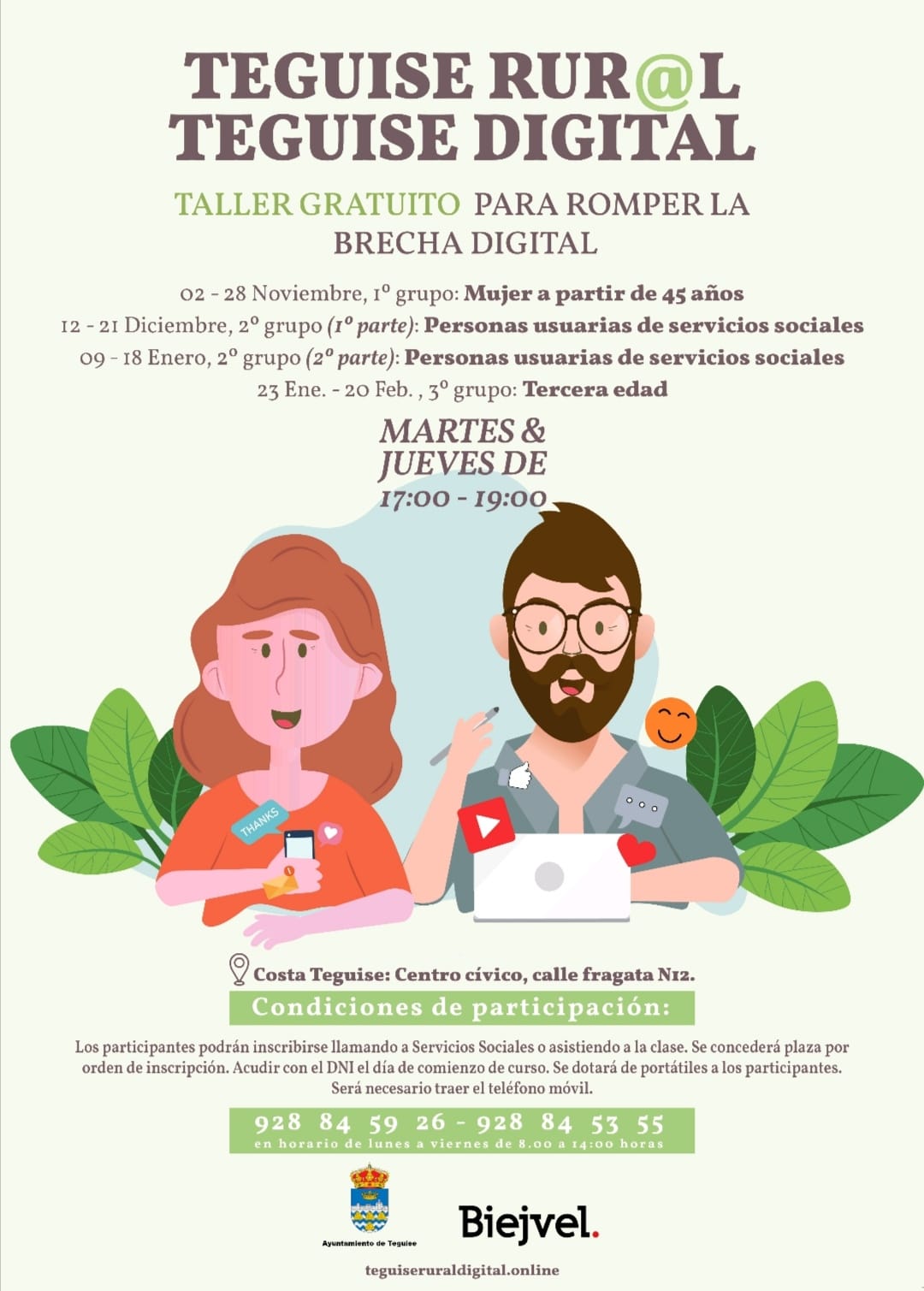 El Ayuntamiento de Teguise organiza el taller gratuito ‘Teguise Rural, Teguise Digital’, que brindará a las personas participantes la oportunidad de adquirir habilidades digitales esenciales y fortalecer su conectividad en el mundo digital.